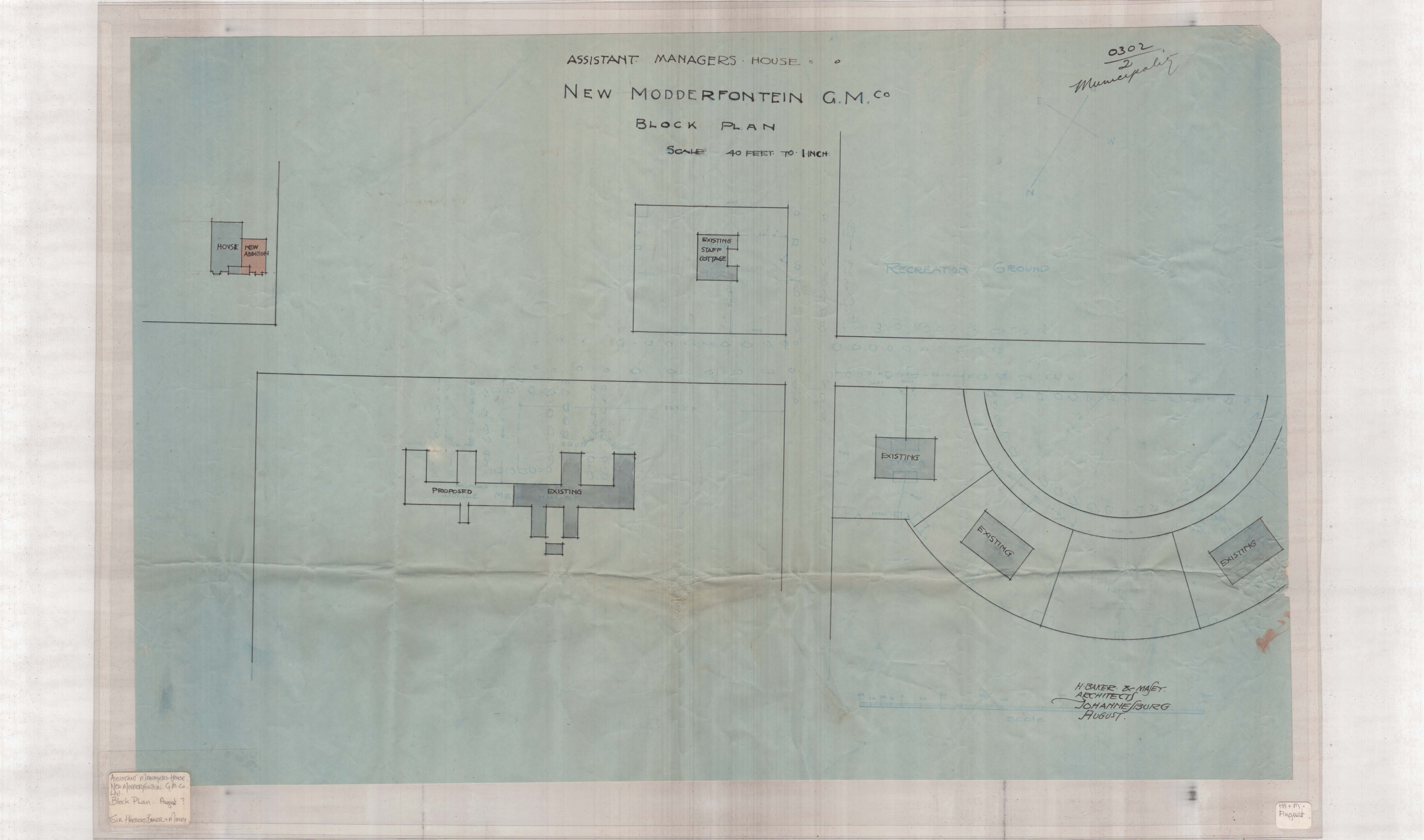 Baker & Masey. New Modderfontein Block Plan for Assistant Managers House. Aug (year unknown). Ink & watercolours on paper.